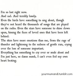 I feel numb Ak I felt so much that I started to feel nothing Unknown emotional numbness quotes My heart hurts and Im in a drowsy. Iloveyoursoul Words Quotes Inspirational Quotes Quotes Pin On Thoughts The Moment I M Feeling Numb But Also In Dire Need To Express My Unspoken Feelings Feeling.